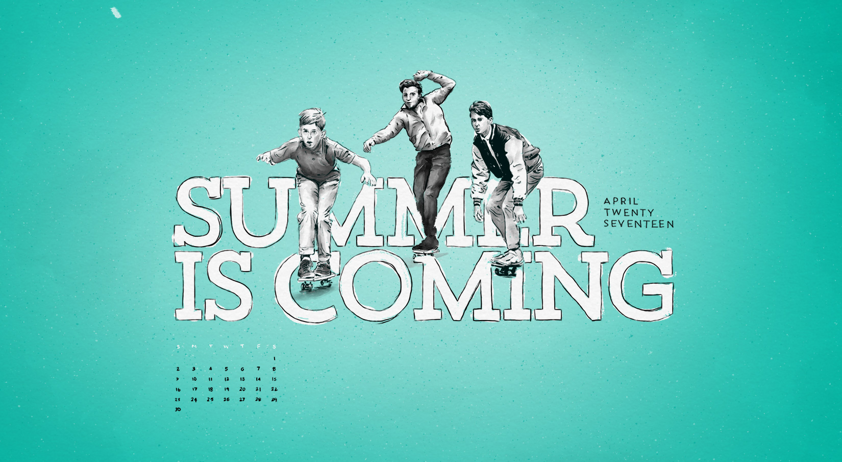 This wallpaper was sketched while wishing for warmer days, and inspired by a 1965 Life Magazine article featuring some amazing photos from the early days of skateboarding.