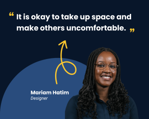 Your perspective matters—don’t shrink yourself to fit others expectations. Mariam, one of our Designers, believes speaking up matters, even when it feels uncomfortable. Offering alternative ideas helps processes evolve and she always appreciates when people push the limits.