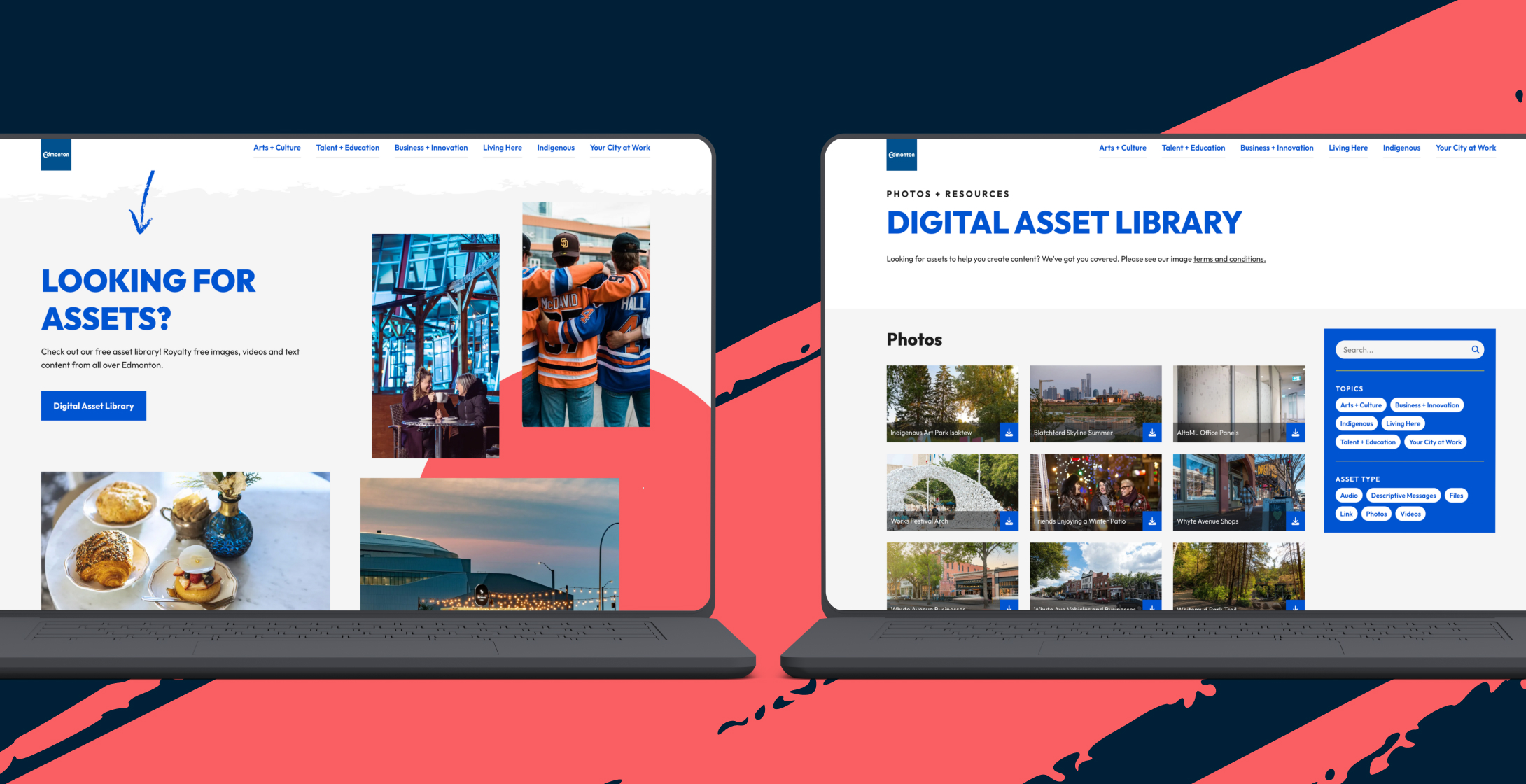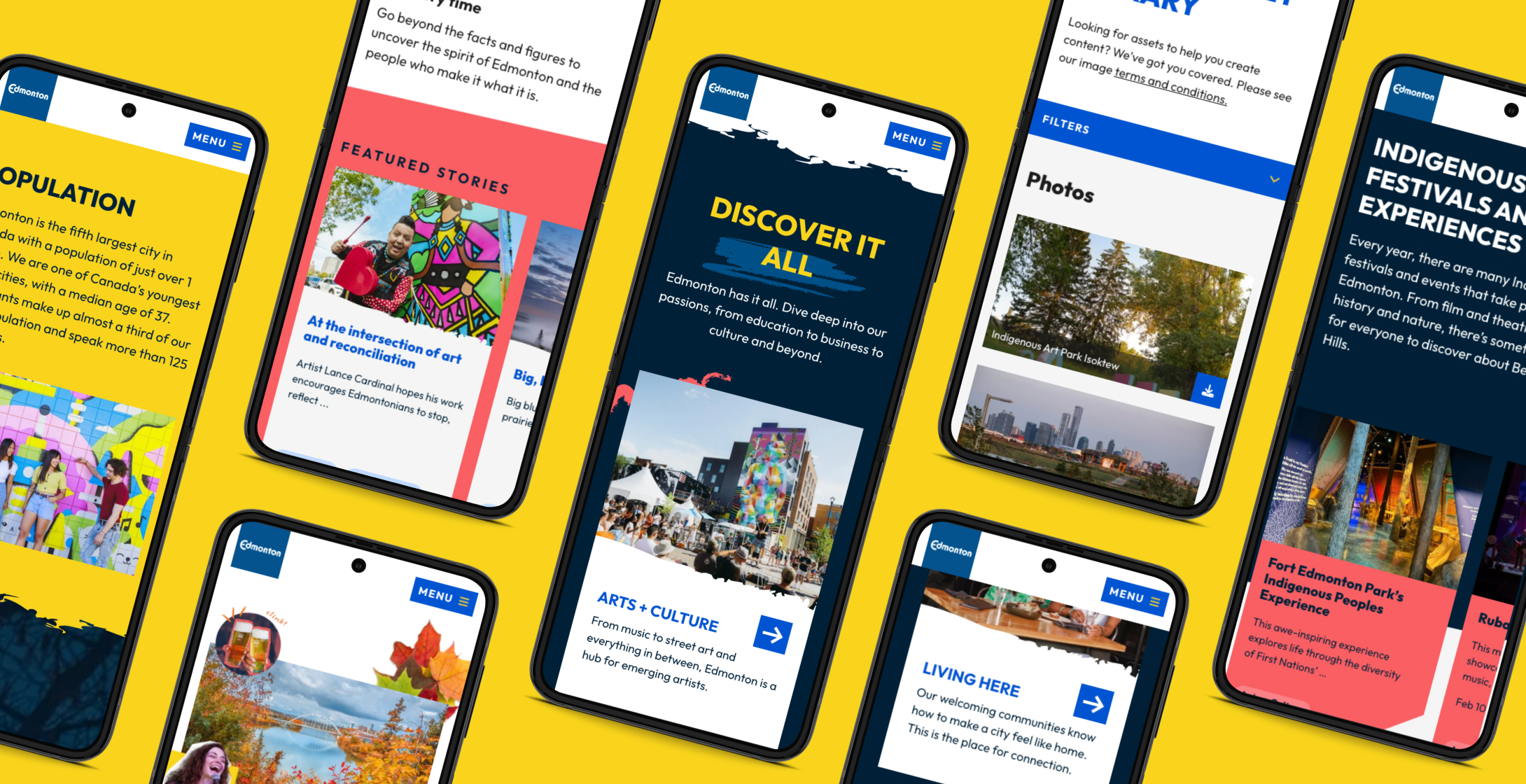 The City of Edmonton wanted to create a vibrant website that told the human-centered stories of Edmonton and its diverse citizens. The new site needed to include engaging visuals, appealing design, and clean, intuitive functionality. Key goals included: